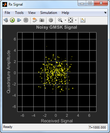 В окне Rx Signal отображается график рассеяния сигнала после канала AWGN.