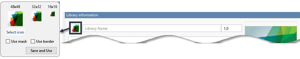 Чтобы изменить значок по умолчанию, щелкните рисунок слева от поля Имя библиотеки или Имя приложения для предварительного просмотра значка.