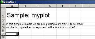 Эта иллюстрация вызывает функцию myplot со значением 4. Для выполнения функции выполните A7 (=myplot(4)) активной соты. Нажмите F2, а затем Enter.