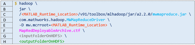 | C | Стандартное имя файла JAR. Все приложения имеют одинаковый JAR: mwmapreduce.jar. Путь к JAR также фиксирован относительно местоположения среды выполнения MATLAB. |