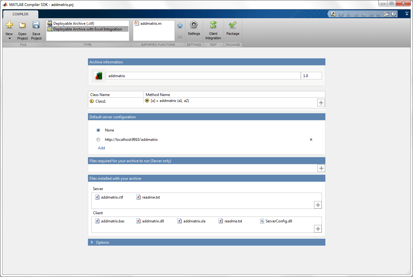 Чтобы создать надстройку Excel, интегрированную с MATLAB ® Production Server™: