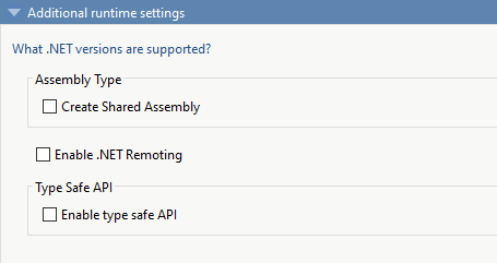 | Тип пакетного приложения | Описание | Дополнительные параметры среды выполнения |