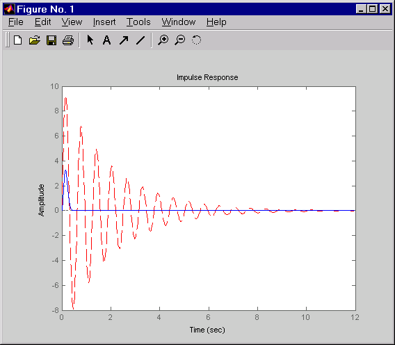 Эти команды создают следующий рисунок, на котором сравниваются импульсные отклики с разомкнутым и замкнутым контуром для этого примера.