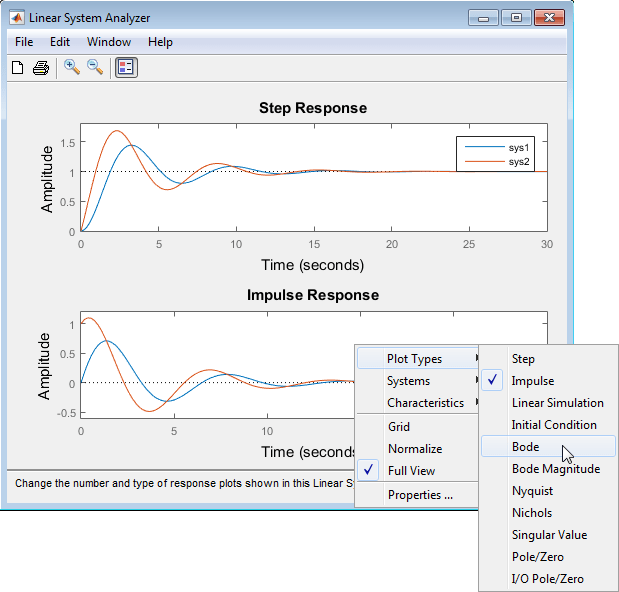 linearSystemAnalyzer(sys1,sys2,...,sysN)