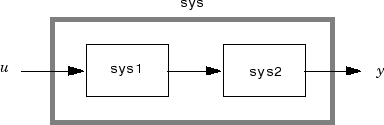 sys = series(sys1,sys2) формирует базовое соединение серии, показанное ниже.