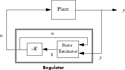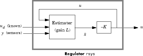 Этот синтаксис предполагает, что все входы sys являются органами управления, и все выходы измеряются. Регулятор rsys получается путем соединения закона обратной связи состояния u = -Kx и оценщика состояния с матрицей усиления L (см. estim). Для установки с уравнениями
