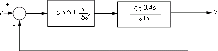 Например, рассмотрим следующий контур управления, в котором установка моделируется как первый порядок плюс время покоя: