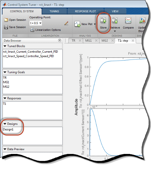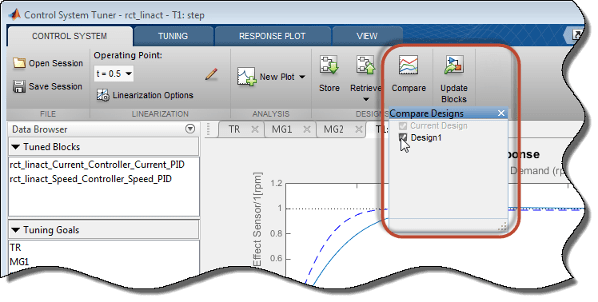 Настроить. Тюнер системы управления обновляет текущую конструкцию (текущий набор параметров контроллера) в соответствии с новой настроенной конструкцией. Все существующие графики, на которых по умолчанию отображается текущая конструкция, обновляются в соответствии с новой текущей конструкцией.