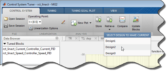 блоки» текущие значения параметров записываются в модель Simulink ®. Если вы решили протестировать конструкцию сохраненного контроллера в полной нелинейной модели, необходимо сначала восстановить эти сохраненные значения в качестве текущей конструкции.