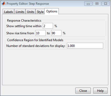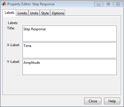 Как правило, можно изменить следующие свойства графиков ответа. При использовании редактора свойств с программным обеспечением Simulink ® Design Optimization™ доступны только панели «Метки» и «Пределы».