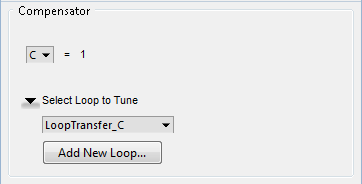 Выберите Loop to Tune - выберите существующую функцию передачи с разомкнутым контуром для настройки из раскрывающегося списка. В браузере данных можно выбрать любую функцию переноса с разомкнутым контуром, включающую последовательно выбранный компенсатор.
