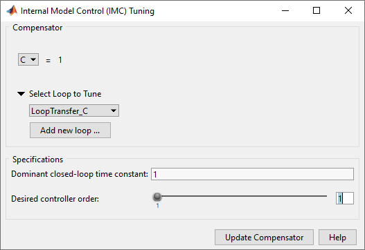 Internal Model Control (IMC) Tuning - Получение стабилизирующего контроллера обратной связи полного порядка с использованием метода проектирования IMC.