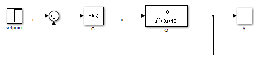 Req = TuningGoal.Rejection('u',10);Рассмотрим модель LTI следующей блок-схемы.