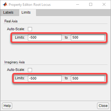Чтобы облегчить чтение диаграммы корневого локуса, увеличьте масштаб изображения. В редакторе корневых локусов щелкните правой кнопкой мыши область печати и выберите «Свойства».