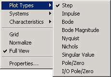 Если в анализаторе линейной системы открыт график, можно переключиться на любой другой доступный график ответа, выбрав пункт Тип графика (Plot Type) в контекстном меню.