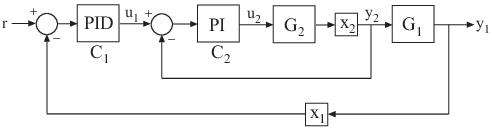 InnerLoop = feedback(X2*G2*C20,1); CL0 = feedback(G1*InnerLoop*C10,X1); CL0.InputName = 'r'; CL0.OutputName = 'y';