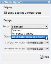 При сбалансированной направленности проекта по умолчанию PID-тюнер выбирает b значение от 0 до 1. Для этого завода, при изменении фокуса конструкции в пользу отклонения нарушений, наборы PID Tuner b = 0 и c = 0. Таким образом, PID-тюнер автоматически генерирует контроллер I-PD для оптимизации для отклонения возмущений. (Явное указание контроллера I-PD без задания проектного фокуса дает аналогичный контроллер.)