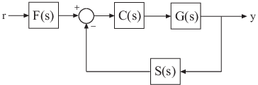 Например, можно соединить динамические системные модели установки G, контроллера C, сенсорной динамики S и фильтра F для построения единой модели, которая представляет всю систему управления с замкнутым контуром на следующей иллюстрации: