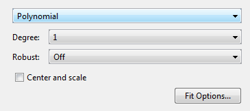 Ограничения нижнего и верхнего коэффициентов являются единственными опциями подгонки, доступными в диалоговом окне для линейных моделей полиномов. Для полиномов можно задать значение «Надежный» в приложении «Фитинг кривой», не открывая диалоговое окно «Параметры подгонки».