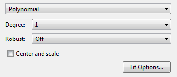 При подгонке многочленов высокой степени процедура подгонки использует предикторные значения в качестве основы для матрицы с очень большими значениями, что может привести к проблемам масштабирования. Чтобы справиться с этим, необходимо нормализовать данные путем центрирования их на нулевом среднем уровне и масштабирования до стандартного отклонения единицы измерения. Нормализуйте данные, установив флажок Центр и масштаб (Center and scale) в приложении Фитинг кривой (Curve Fitting).