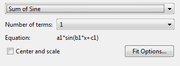 Панель инструментов вычисляет оптимизированные начальные точки для суммы синусоидальных моделей на основе текущего набора данных. Можно переопределить начальные точки и указать собственные значения в диалоговом окне «Параметры вписывания».