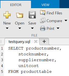 Сохранение кода SQL в .txt или .sql файл. Редактор MATLAB открывает сохраненный файл кода SQL.