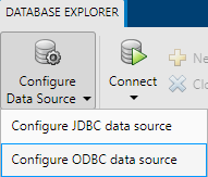 При настройке источника данных ODBC приложение Database Explorer автоматически обращается к администратору источников данных Microsoft ODBC. Также можно получить доступ к администратору источника данных ODBC (Майкрософт) с помощью configureODBCDataSource функция.