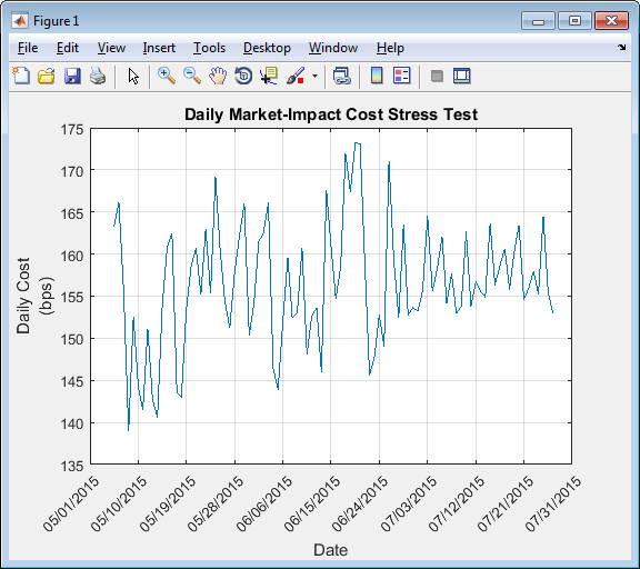 kk = 1; for ii = dateRange(1):dateRange(end) for jj = 1:numStocks k.MiCode = TradeDataStressTest.MICode(jj); k.MiDate = ii; o.MI(kk) = marketImpact(k,TradeDataStressTest(jj,:)); o.MIDollar(kk) = (TradeDataStressTest.Shares(jj) ... * TradeDataStressTest.Price(jj)) ... * o.MI(kk) /10000 * TradeDataStressTest.FXRate(jj); kk = kk + 1; end end