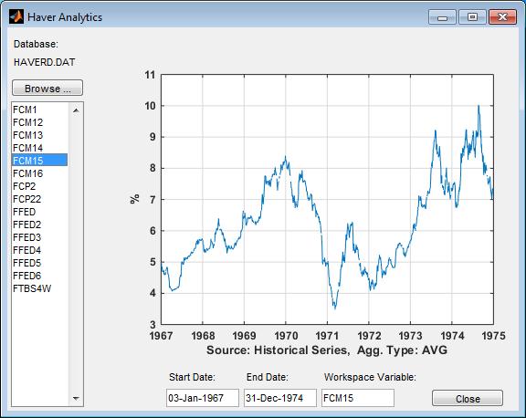 Переменная рабочего пространства: переменная MATLAB ®, к которойhavertool записывает данные для выбранной переменной Haver Analytics.