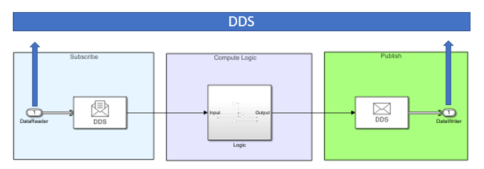 Сама модель содержит логику приложения DDS. Логическая часть модели не зависит от промежуточного программного обеспечения. Он использует данные, передаваемые из промежуточного программного обеспечения в форме, совместимой с Simulink, для запуска алгоритма приложения.
