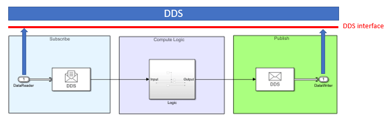 Чтобы подключить приложение DDS для публикации и подписки на сеть DDS, настройте интерфейс DDS. Интерфейс DDS является точкой соединения между приложением и сетью DDS. В частности, интерфейс определяет тему и качество обслуживания (QoS) для DataReaders и DataWriters в приложении. В модели приложения входные данные представляют DataReaders, а выходные данные представляют DataWriters. Чтобы настроить интерфейс, используйте редактор сопоставлений кода и инспектор свойств для настройки портов в качестве устройств чтения и записи, соответствующих требованиям приложения.