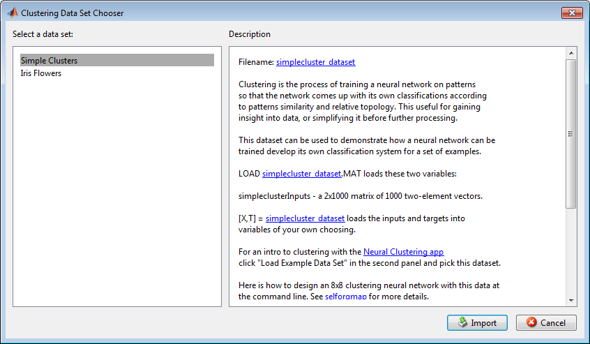 Используйте nctool GUI, как описано в разделе Использование приложения кластеризации нейронных сетей.
