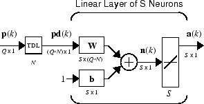 Вы можете использовать несколько нейронов в адаптивной системе, поэтому вам нужна дополнительная нотация. Можно использовать линию задержки с резьбой с S линейными нейронами, как показано на следующем рисунке.