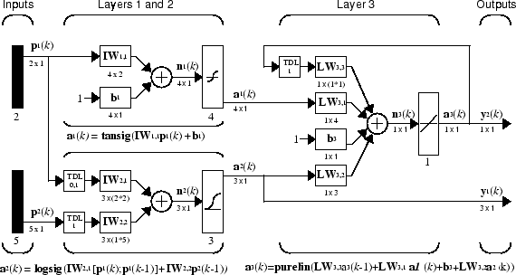 Аналогично, вес каждого слоя имеет столько столбцов, сколько размер j-го слоя (net.layers{j}.size), умноженное на число его значений задержки (length(net.layerWeights{i,j}.delays)).