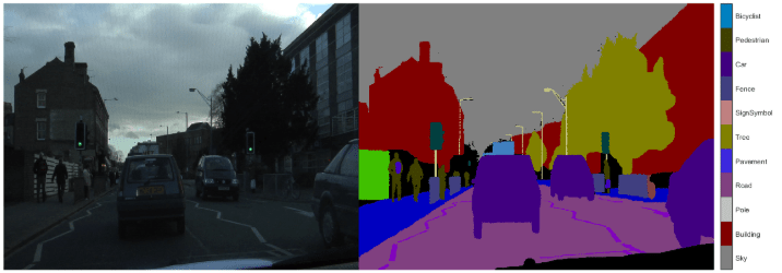 | Набор данных CamVid представляет собой совокупность изображений, содержащих виды на уровне улиц, полученные от управляемых автомобилей. Набор данных полезен для учебных сетей, которые выполняют семантическую сегментацию изображений и предоставляют пиксельные метки для 32 семантических классов, включая автомобильные, пешеходные и дорожные. Изображения имеют размер 720-на-960-на-3. Загрузите и извлеките набор данных CamVid [8] из http://web4.cs.ucl.ac.uk/staff/g.brostow/MotionSegRecData. Набор данных составляет около 573 МБ. В зависимости от подключения к Интернету процесс загрузки может занять некоторое время. Набор downloadFolder = tempdir; url = "http://web4.cs.ucl.ac.uk/staff/g.brostow/MotionSegRecData" urlImages = url + "/files/701_StillsRaw_full.zip"; urlLabels = url + "/data/LabeledApproved_full.zip"; dataFolder = fullfile(downloadFolder,'CamVid'); dataFolderImages = fullfile(dataFolder,'images'); dataFolderLabels = fullfile(dataFolder,'labels'); filenameLabels = fullfile(dataFolder,'labels.zip'); filenameImages = fullfile(dataFolder,'images.zip'); if ~exist(filenameLabels, 'file') || ~exist(imagesZip,'file') mkdir(dataFolder) fprintf("Downloading CamVid data set images (557 MB)... "); websave(filenameImages, urlImages); unzip(filenameImages, dataFolderImages); fprintf("Done.\n") fprintf("Downloading CamVid data set labels (16 MB)... "); websave(filenameLabels, urlLabels); unzip(filenameLabels, dataFolderLabels); fprintf("Done.\n") end Загрузите данные как хранилище данных метки пикселя с помощью oldpath = addpath(fullfile(matlabroot,'examples','deeplearning_shared','main')); imds = imageDatastore(dataFolderImages,'IncludeSubfolders',true); classes = ["Sky" "Building" "Pole" "Road" "Pavement" "Tree" ... "SignSymbol" "Fence" "Car" "Pedestrian" "Bicyclist"]; labelIDs = camvidPixelLabelIDs; pxds = pixelLabelDatastore(dataFolderLabels,classes,labelIDs); Пример обработки этих данных для глубокого обучения см. в разделе Семантическая сегментация с использованием глубокого обучения. Для восстановления пути используйте path(oldpath); | Семантическая сегментация |