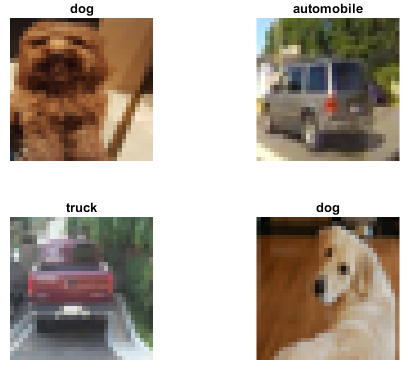 (Типичный пример) | Набор данных CIFAR-10 содержит 60 000 цветных изображений размером 32 на 32 пикселя, относящихся к 10 классам (самолет, автомобиль, птица, кот, олень, собака, лягушка, лошадь, корабль и грузовик). На класс приходится 6000 изображений, и набор данных разделяется на обучающий набор с 50 000 изображений и тестовый набор с 10 000 изображений. Этот набор данных является одним из наиболее широко используемых наборов данных для тестирования новых моделей классификации изображений. Загрузите и извлеките набор данных CIFAR-10 [7] из https://www.cs.toronto.edu/%7Ekriz/cifar-10-matlab.tar.gz. Набор данных составляет около 175 МБ. В зависимости от подключения к Интернету процесс загрузки может занять некоторое время. Набор url = 'https://www.cs.toronto.edu/~kriz/cifar-10-matlab.tar.gz'; downloadFolder = tempdir; filename = fullfile(downloadFolder,'cifar-10-matlab.tar.gz'); dataFolder = fullfile(downloadFolder,'cifar-10-batches-mat'); if ~exist(dataFolder,'dir') fprintf("Downloading CIFAR-10 dataset (175 MB)... "); websave(filename,url); untar(filename,downloadFolder); fprintf("Done.\n") end loadCIFARData, которая используется в примере Train Resident Network для классификации изображений.oldpath = addpath(fullfile(matlabroot,'examples','nnet','main')); [XTrain,YTrain,XValidation,YValidation] = loadCIFARData(downloadFolder); Пример обработки этих данных для глубокого обучения см. в разделе Train Resident Network for Image Classification. Для восстановления пути используйте path(oldpath); | Классификация изображений |