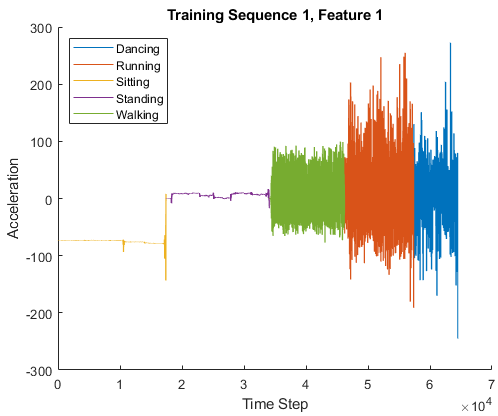 | Набор данных Human Activity содержит семь временных рядов данных датчиков, полученных со смартфона, надеваемого на тело. Каждая последовательность имеет три признака и варьирует по длине. Три характеристики соответствуют показаниям акселерометра в трех различных направлениях. Загрузите набор данных «Деятельность персонала». dataTrain = load('HumanActivityTrain'); dataTest = load('HumanActivityTest'); XTrain = dataTrain.XTrain; YTrain = dataTrain.YTrain; XTest = dataTest.XTest; YTest = dataTest.YTest; Пример обработки этих данных для глубокого обучения см. в разделе Классификация последовательности к последовательности с использованием глубокого обучения. | Классификация последовательности к последовательности |