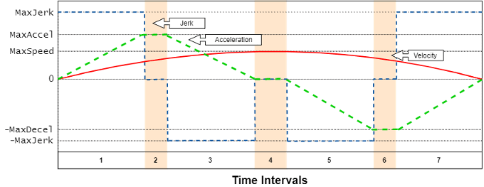 | 1 | Установить в значение MaxJerk | Увеличение от 0 кому MaxAccel | Увеличение от начальной скорости | - |
