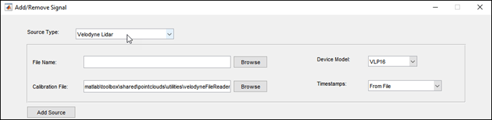 Создание VelodyneLidarSource программно, например, при программном создании groundTruthMultisignal объект, используйте vision.labeler.loading.VelodyneLidarSource функция (описана здесь).