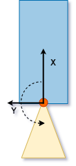 В этой системе координат, если смотреть в положительном направлении оси X, положительные точки оси Y остаются. Положительная ось Z указывает от основания вверх. Углы рыскания, тангажа и крена являются положительными по часовой стрелке, если смотреть в положительных направлениях осей Z-, Y- и X соответственно. Если смотреть сцену с 2D перспективы сверху вниз, то угол рыскания будет против часовой стрелки положительным, поскольку вы просматриваете сцену в отрицательном направлении оси Z.