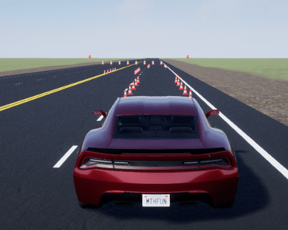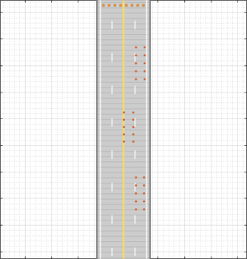 DoubleLaneChange.mat | Прямая дорога с транспортными конусами и бочками, предназначенными для изменения двойной полосы движения Кубоидная версия не включает в себя знаки светофора или светофор, которые находятся в соответствующей 3D сцене.