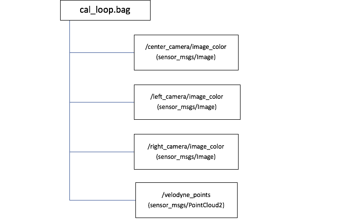 Источники, такие как розбэги, могут содержать несколько сигналов. Рассмотрим росбаг по имени cal_loop.bag. Розаг содержит данные, полученные от четырех датчиков, установленных на транспортном средстве. Источником является файл rosbag. Сигналы в росбэге: sensor_msgs темы, которые соответствуют данным от четырех датчиков. Темы имеют такие названия.