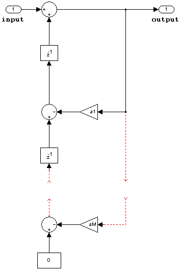 Выберите структуру фильтра, которую должен реализовать блок. Можно выбрать Direct form, Direct form transposed, или Lattice AR.