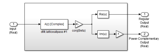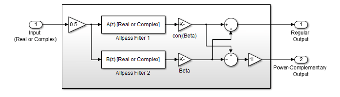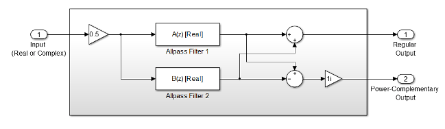 dsp.CoupledAllpassFilter объект реализует связанную структуру фильтра allpass, состоящую из двух фильтров allpass, соединенных параллельно. Каждая ветвь allpass может содержать несколько разделов. Общий выходной сигнал фильтра вычисляется путем сложения выходного сигнала двух соответствующих ветвей. Также может быть возвращен дополнительный второй выход, который является мощностью, комплементарной первому. Например, с точки зрения частотной области, если первый выход реализует фильтр нижних частот, то второй выход реализует дополнительный фильтр верхних частот. Для реальных сигналов комплементарный выходной сигнал мощности вычисляется путем вычитания выходного сигнала второй ветви из первой. dsp.CoupledAllpassFilter поддерживает плавающую точку с двойной и одинарной точностью и позволяет выбирать между различными структурами реализации. Этот системный object™ также поддерживает комплексные коэффициенты, многоканальный ввод переменной длины и настраиваемые значения коэффициентов фильтра.