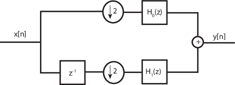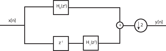 Z-преобразование фильтра может быть записано в терминах четных и нечетных полифазных компонентов как