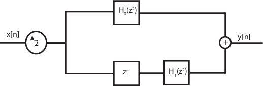 Z-преобразование фильтра может быть записано в терминах четных и нечетных полифазных компонентов как