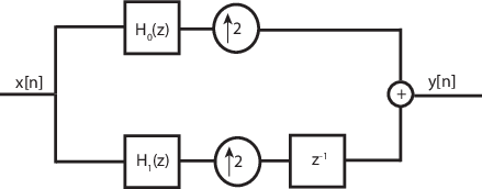 Считывайте одновременно отсчеты звука 1024. Фильтрация входного сигнала для получения низкочастотных и высокочастотных поддиапазонов, прореженных в два раза. Это банк фильтров анализа. В качестве набора фильтров синтеза используйте полупозиционный интерполятор. Отображение спектра рабочей мощности входного аудиосигнала и выходного сигнала блока фильтров синтеза. Воспроизведение выходных данных.