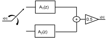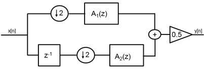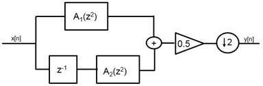 dsp.IIRHalfbandDecimator Система object™ выполняет эффективное многофазное прореживание входного сигнала в два раза. Для проектирования полуполосного фильтра можно указать объект для использования эллиптической конструкции или квазилинейной фазовой конструкции. Объект использует эти методы проектирования для вычисления коэффициентов фильтра. Для фильтрации входных данных объект использует многофазную структуру. Фильтры allpass в многофазной структуре имеют форму минимального множителя.