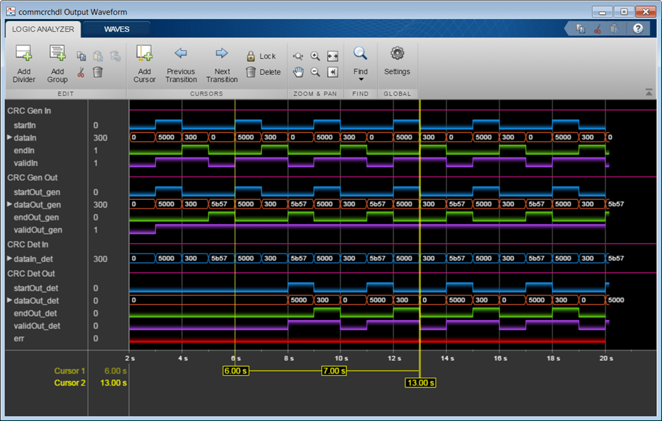Система Logic Analyzer System object™ отображает переходы во временных сигналах. Используя dsp.LogicAnalyzer, вы можете:
