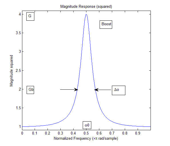 H = dsp.ParametricEQFilter возвращает фильтр параметрического эквалайзера второго порядка, который независимо фильтрует каждый канал ввода во времени, используя значения по умолчанию для Bandwidth, CenterFrequency, и PeakGaindB. center frequency и bandwidth задаются в Гц и настраиваются. peak gain (dip) указывается в дБ и также настраивается. bandwidth измеряется в среднем арифметическом между peak gain в абсолютных энергоблоках и одном.